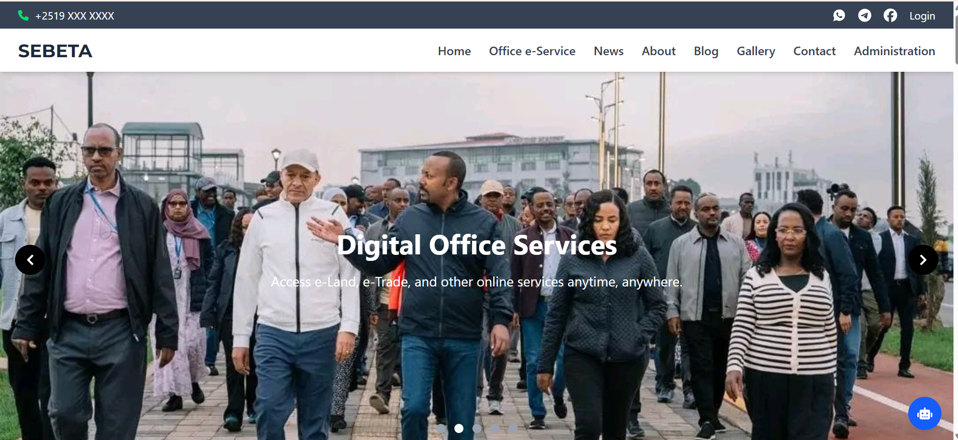 Official sub-city website built with modern UI, announcement system, and service information pages.
