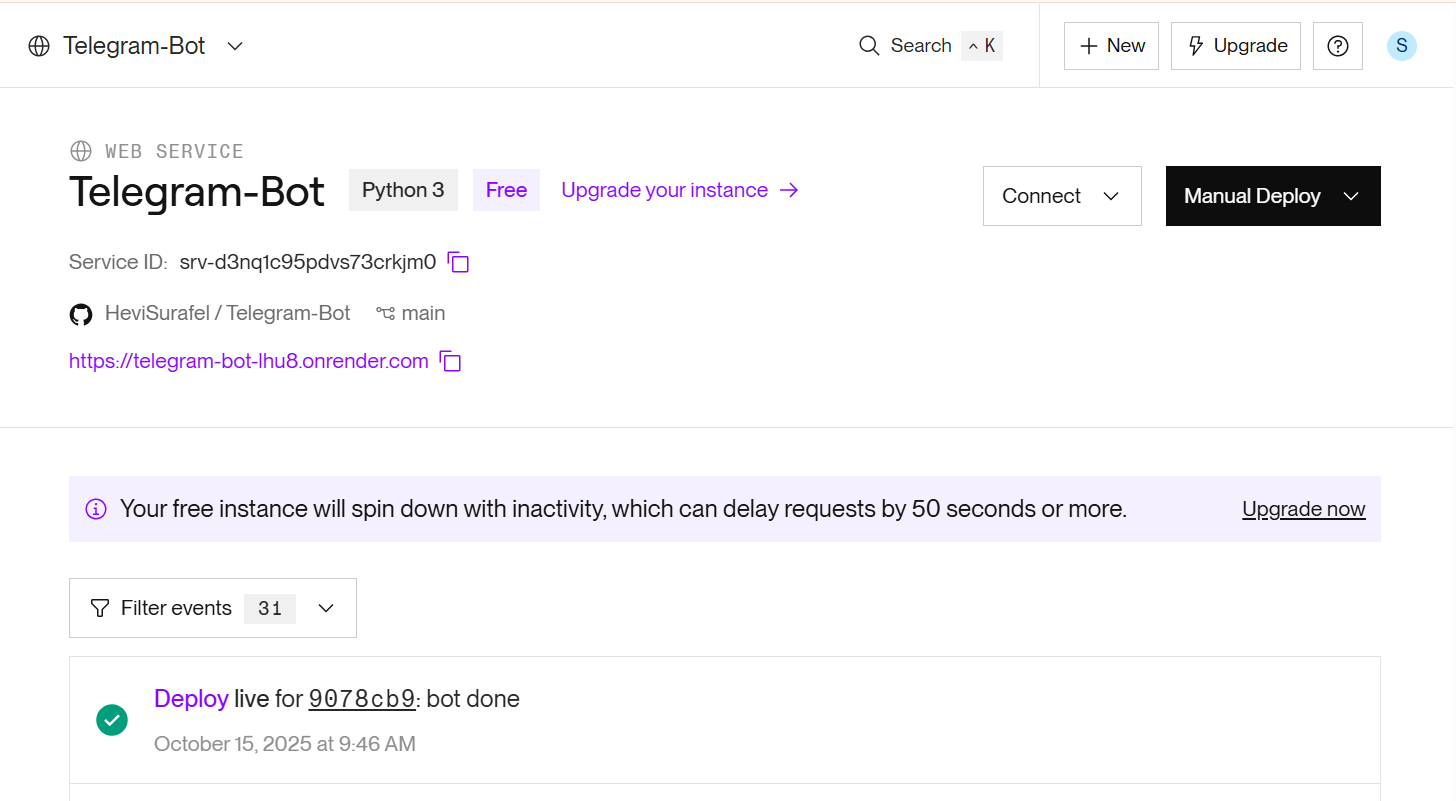 A Telegram bot built with Python for automation and user interaction, deployed on Render.